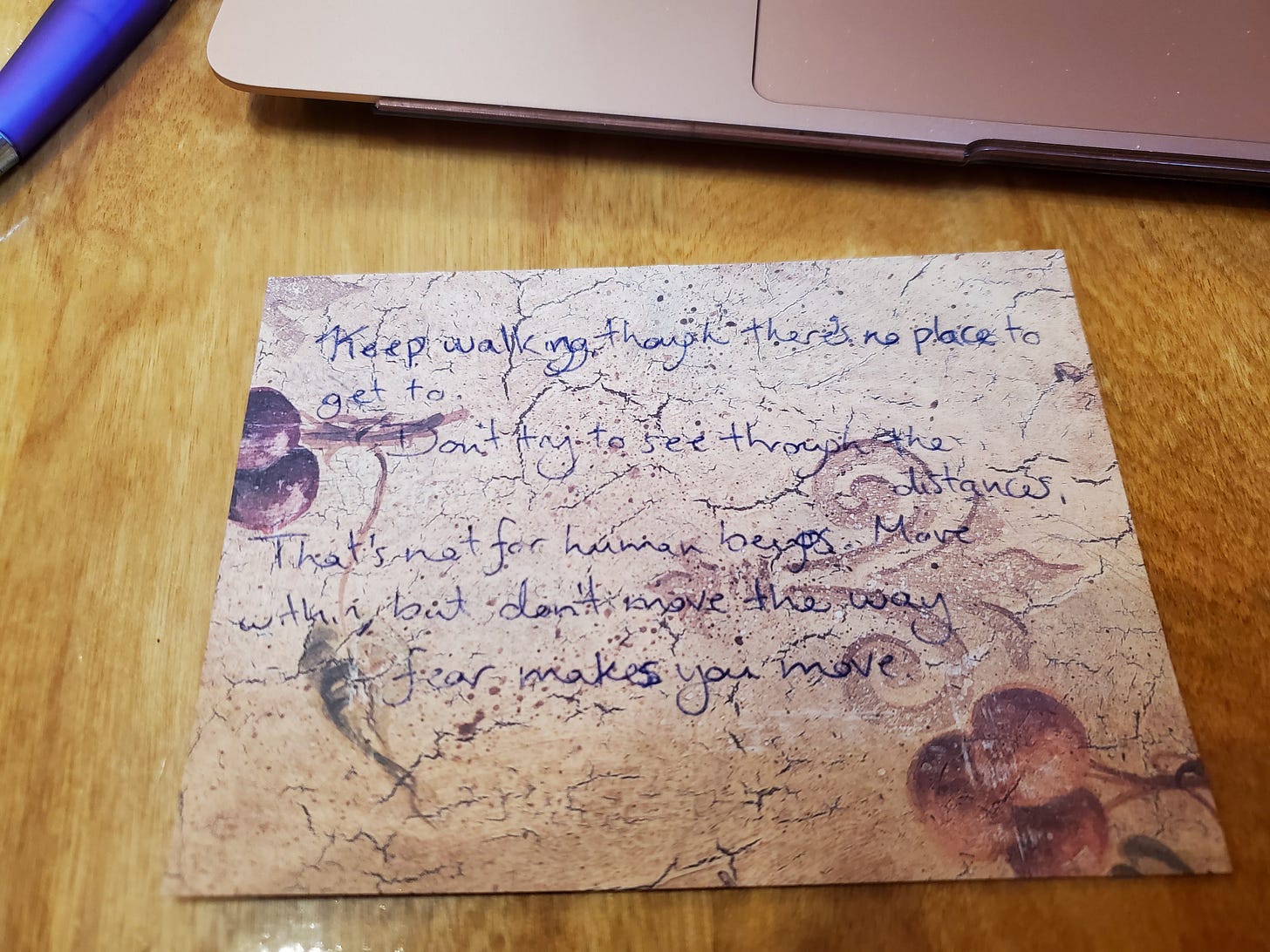 Find a song lyric, poem, prayer, mantra, quote, scripture—something to read first thing each morning that inspire or comforts you.